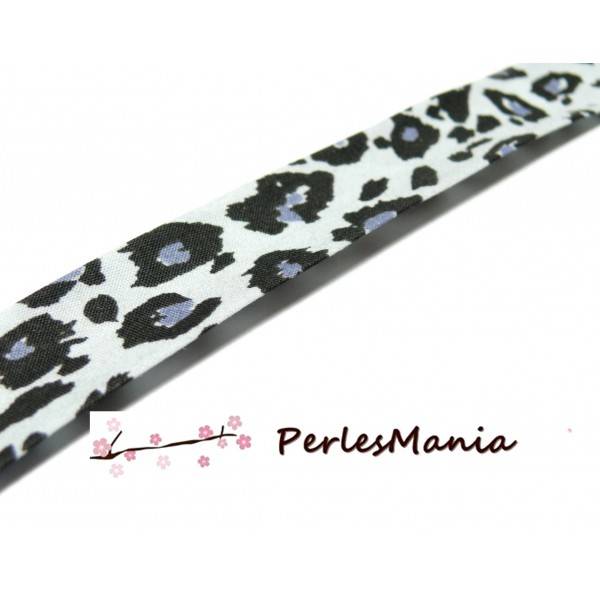 3 mètres ruban biais liberty 18mm URBAN WILD Couleur 8 GUEPARD GRIS BLEU, DIY 3 mètre de long sur 18mm de large déjà plié ( total 35mm de large)
