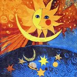 342 Soleil & Lune - Univers constellé d'étoiles - serviette 33x33