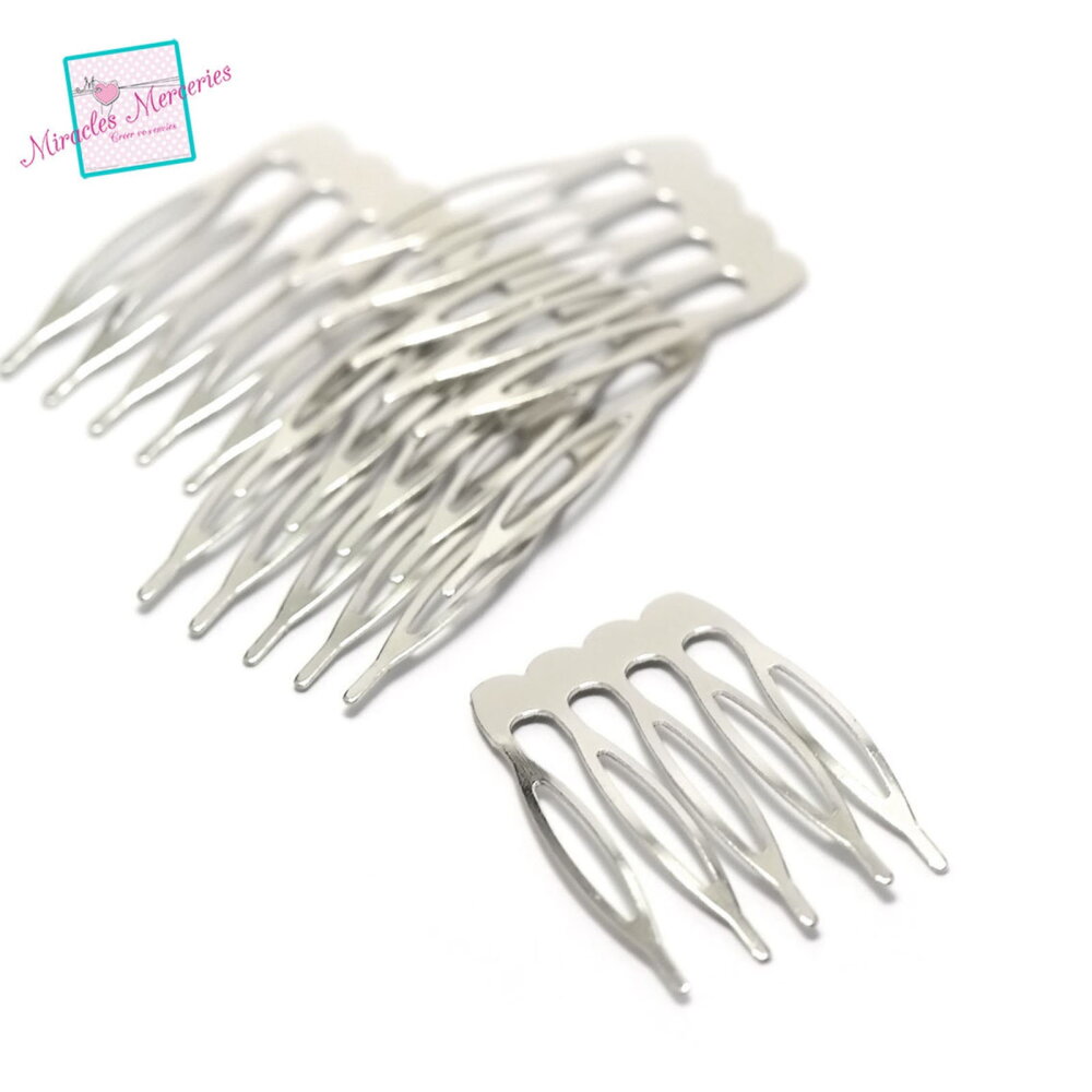 10 barrettes /peignes pour cheveux droit, 40x26mm, argenté / doré / bronze