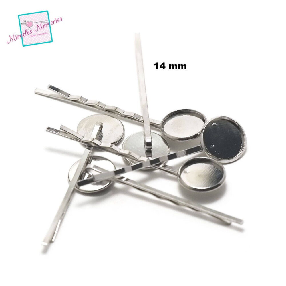 10 épingles à cheveux support cabochon 14 mm, argenté droit
