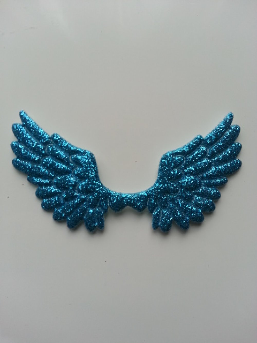 applique ailes d'ange en tisu pailleté 65*35mm bleu turquoise