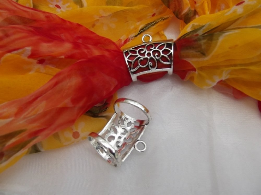 1 Bélière foulard ciselé recto verso fleur rose ajouré Argent Tibétain 4x3.8cm