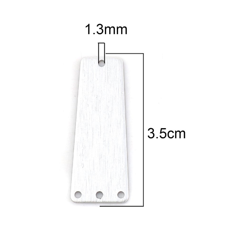 Un connecteur forme trapèze presque rectangle en métal aluminium mat.