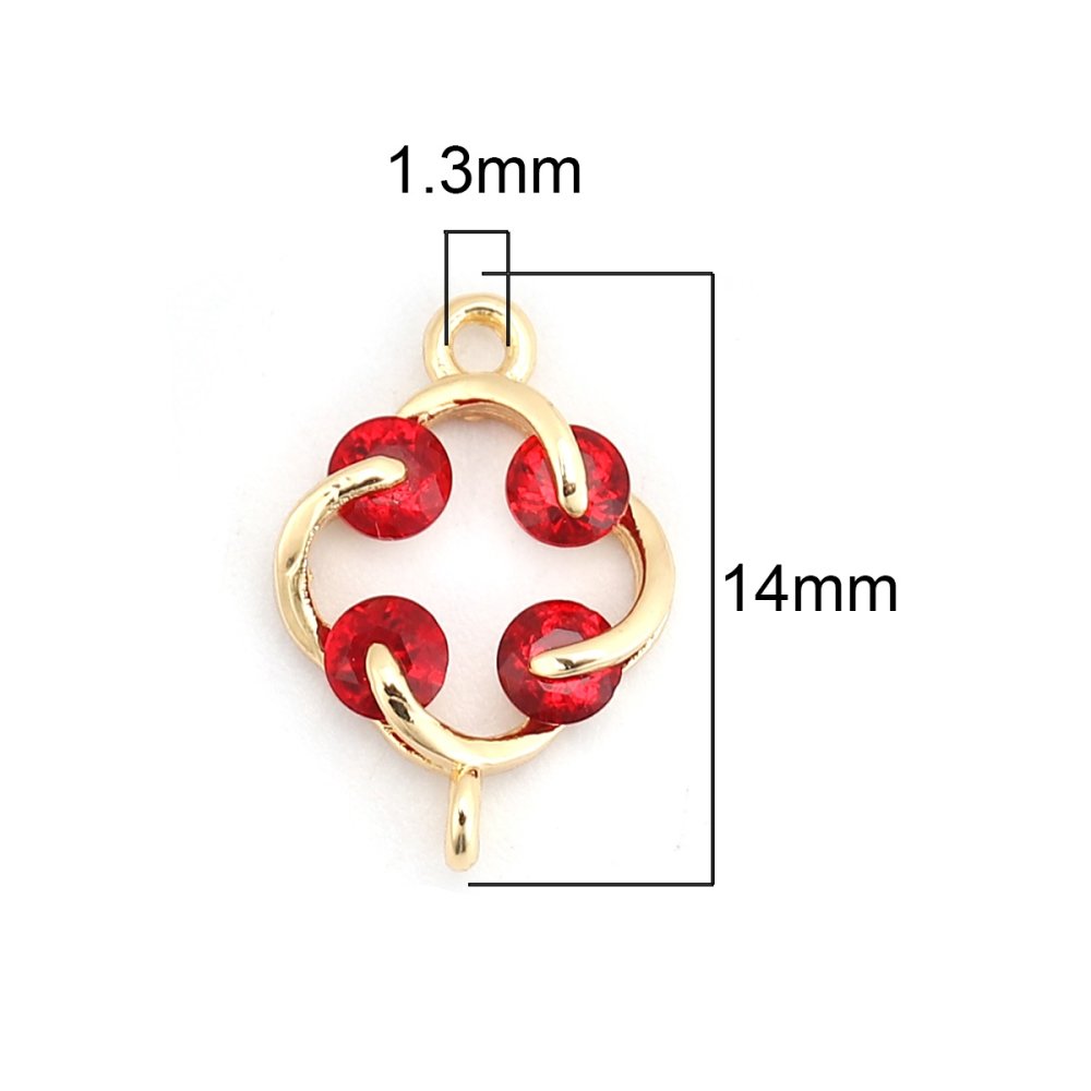Ce connecteur est très petit 10 mm de rayon, 14 mm avec les deux attaches. Cercle enlaçant 4 strass en cristal rouge.