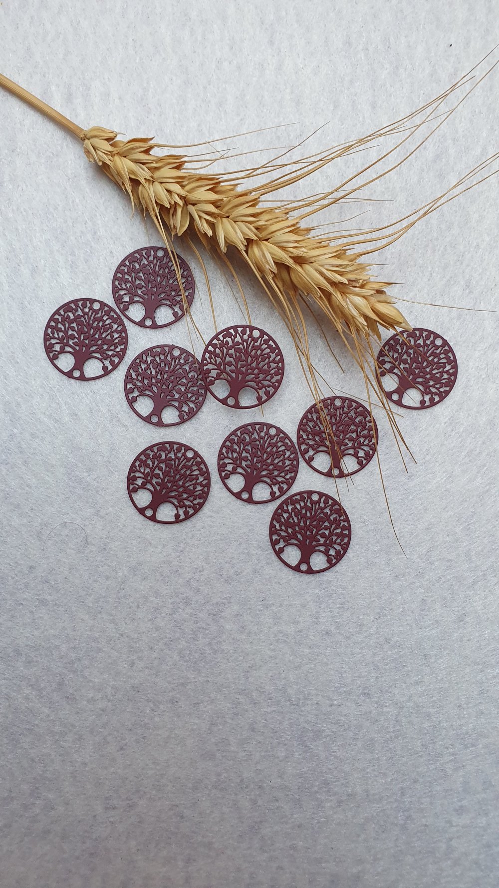 1 estampe arbre de vie bordeaux 20mm cuivre filigrane. Plusieurs couleurs dans la boutique