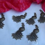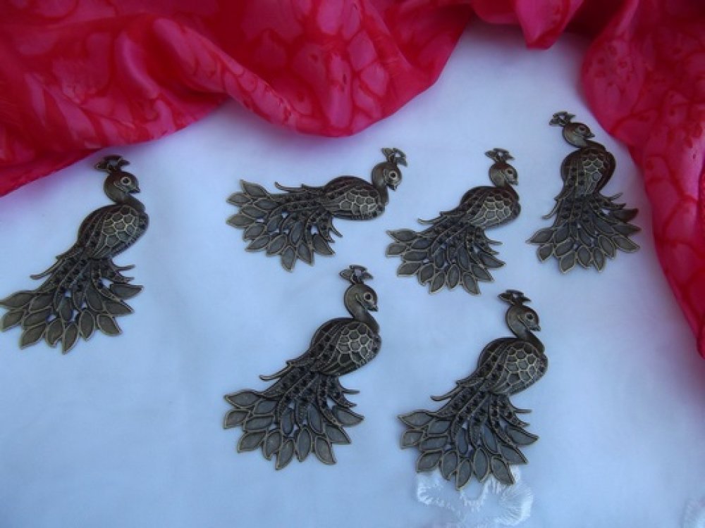 1 Estampe Filigrane Paon Couleur Bronze possibilité coller strass perles 6.9x4.2cm