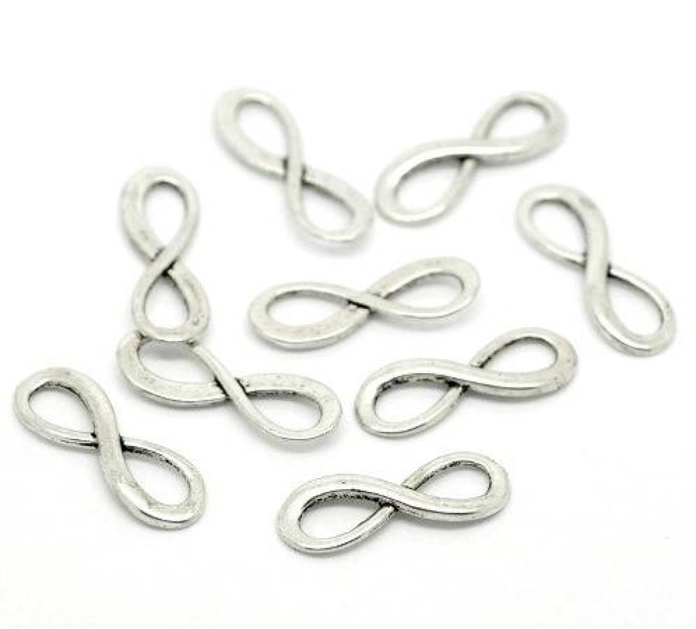 Lot de 10 Connecteurs Intercalaires signe Infini en métal col argenté