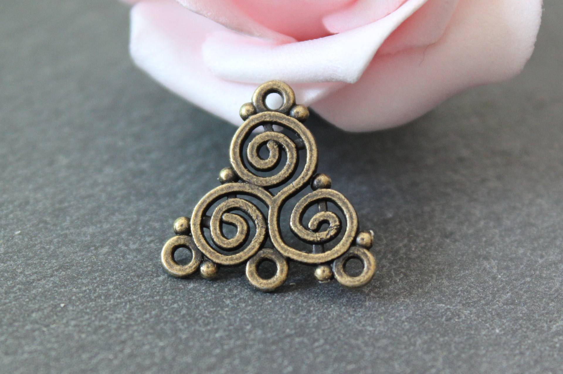 Lot composé de dix connecteurs triangle et arabesques en métal bronze.