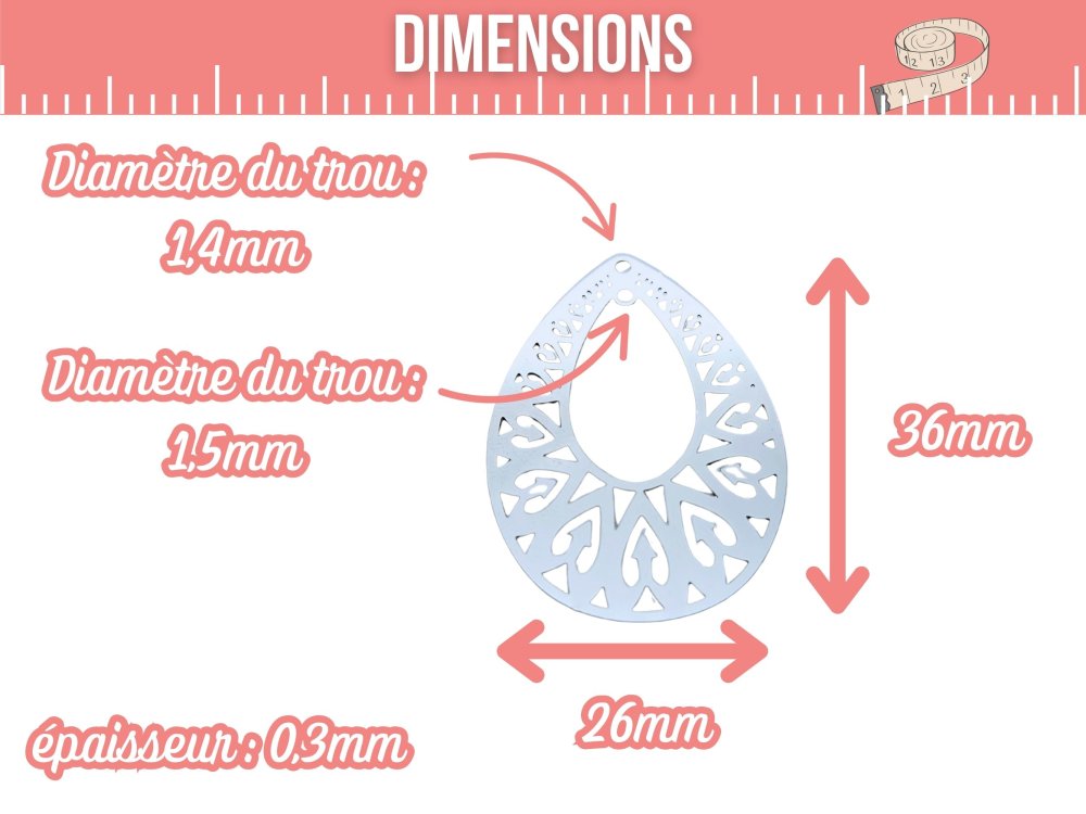 ✅ Taille du trou d’attache : 1,4 mm