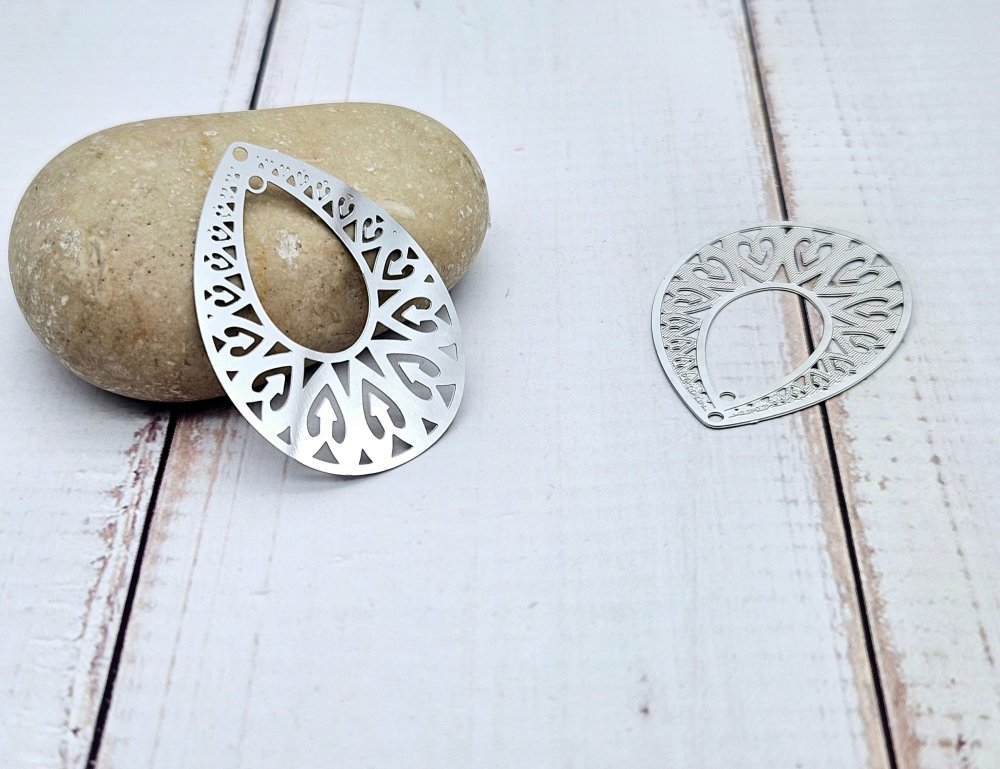 Apportez une touche de romantisme et d’élégance à vos créations avec ces superbes estampes en forme de goutte ajourée de petits cœurs 💕✨.