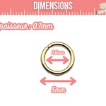 Conçus en acier inoxydable 304 🛡️ et recouverts d’un fin plaquage à l’or 18 carats ✨, ces anneaux allient robustesse et brillance durable. Leur taille compacte (⌀ 5 mm externe, ⌀ 3,6 mm interne, 0,7 mm d’épaisseur) 📏 en fait un élément discret mais essentiel pour toutes vos créations. Ils conviennent aussi bien pour la confection de colliers, bracelets, boucles d’oreilles que pour des réparations de bijoux.