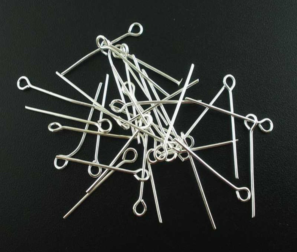 LOT DE 100 PIECES - CLOUS-TIGES A OEIL - CLOUS-TIGES A TETE RONDE - ARGENTÉ