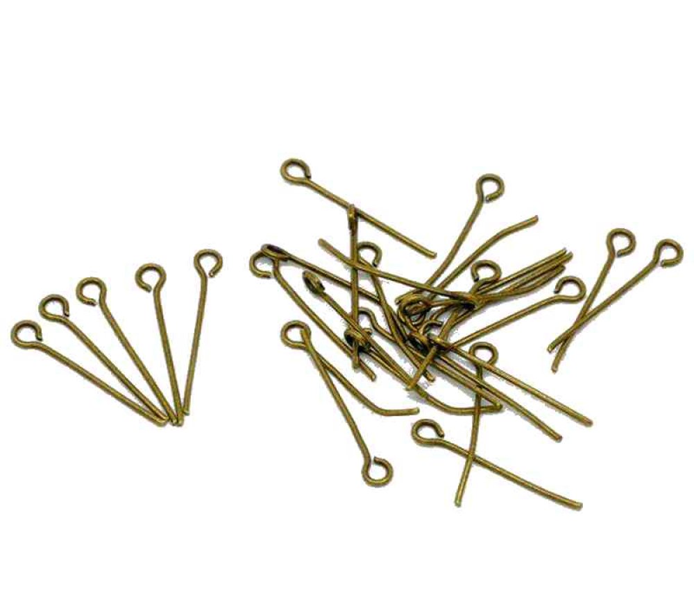 LOT DE 100 PIECES - CLOUS-TIGES A OEIL - CLOUS-TIGES A TETE RONDE - COULEUR BRONZE ANCIEN