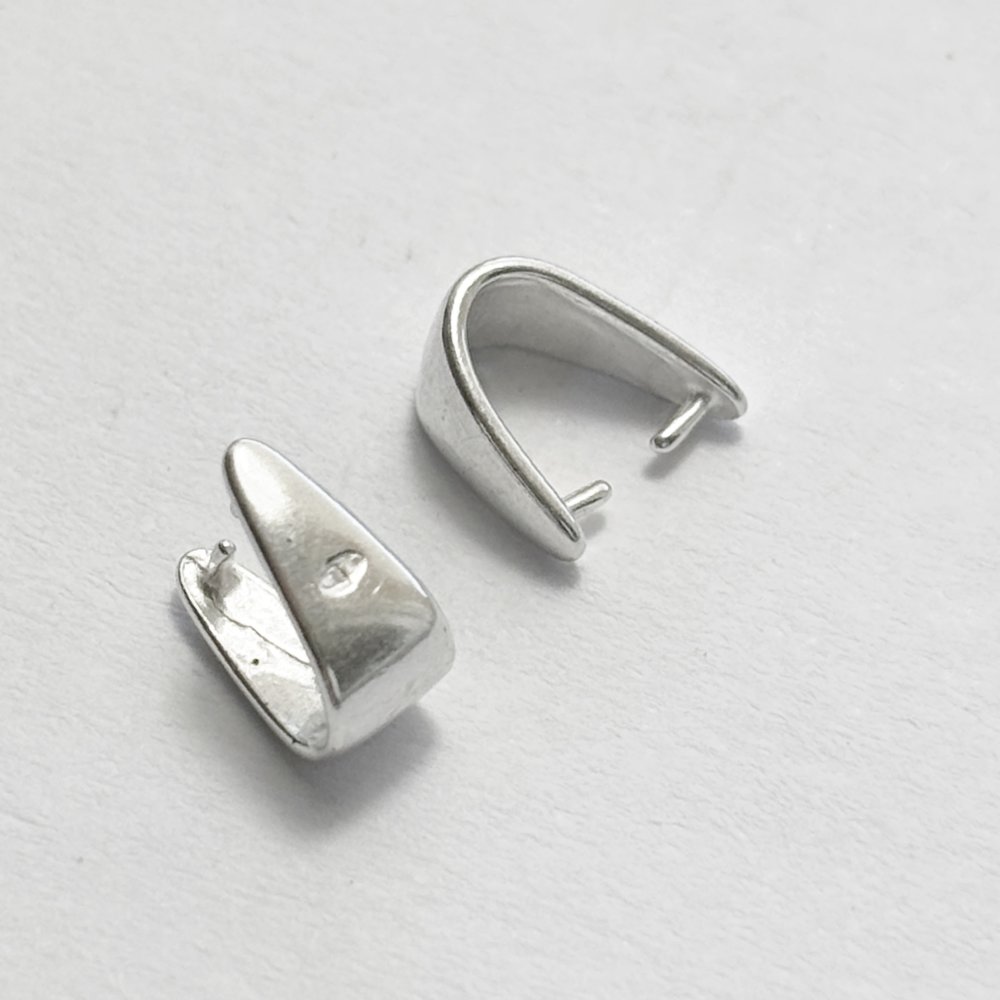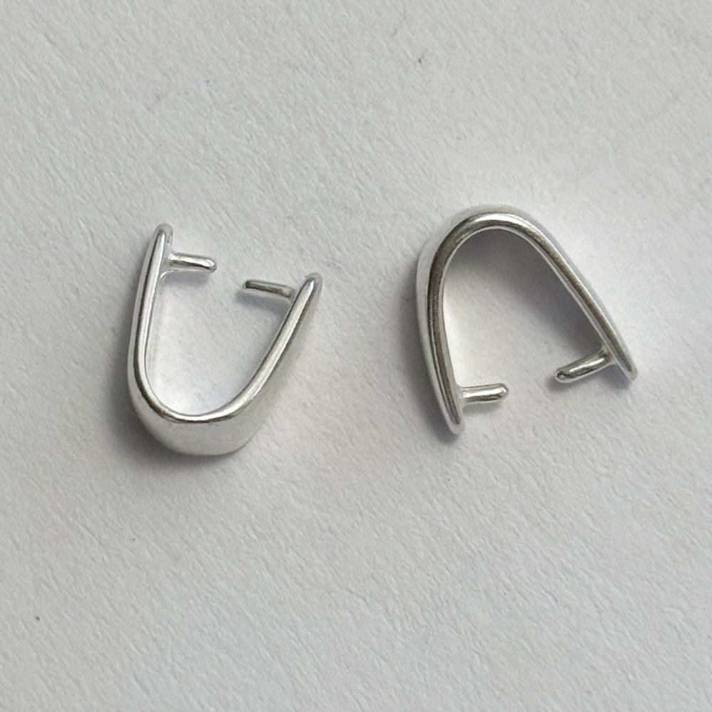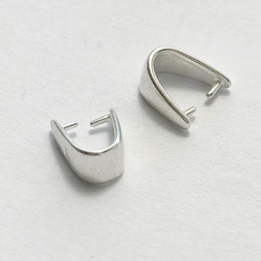 Lot de 2 bélières à pincer en argent 925 recyclé, poinçonnées et brillantes, idéales pour la création de pendentifs solides et raffinés.