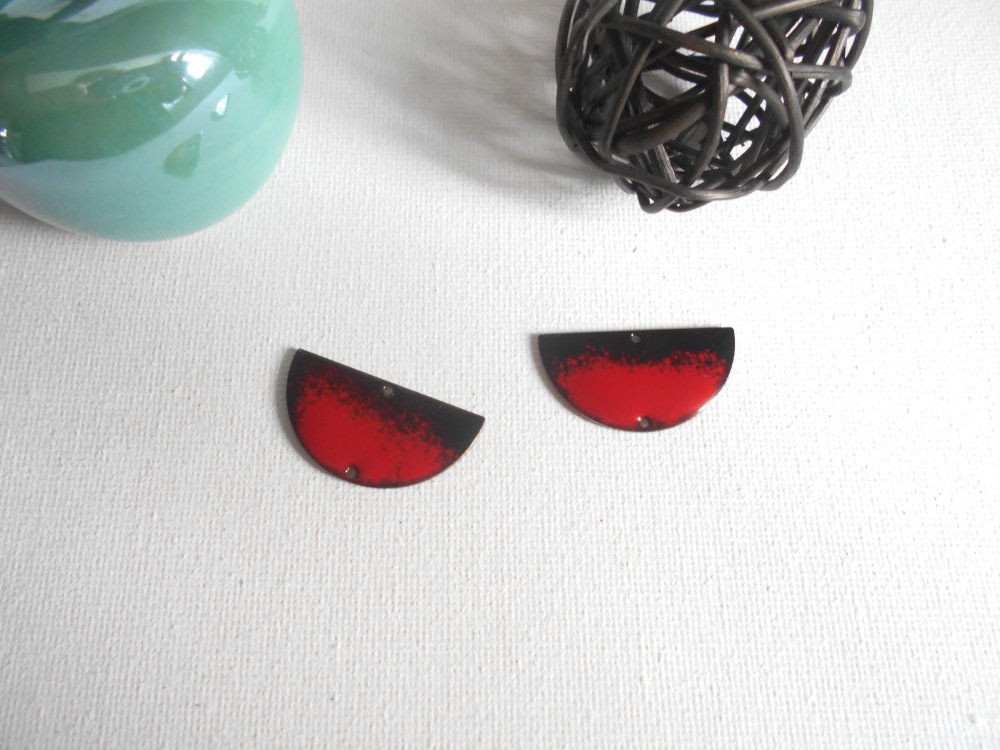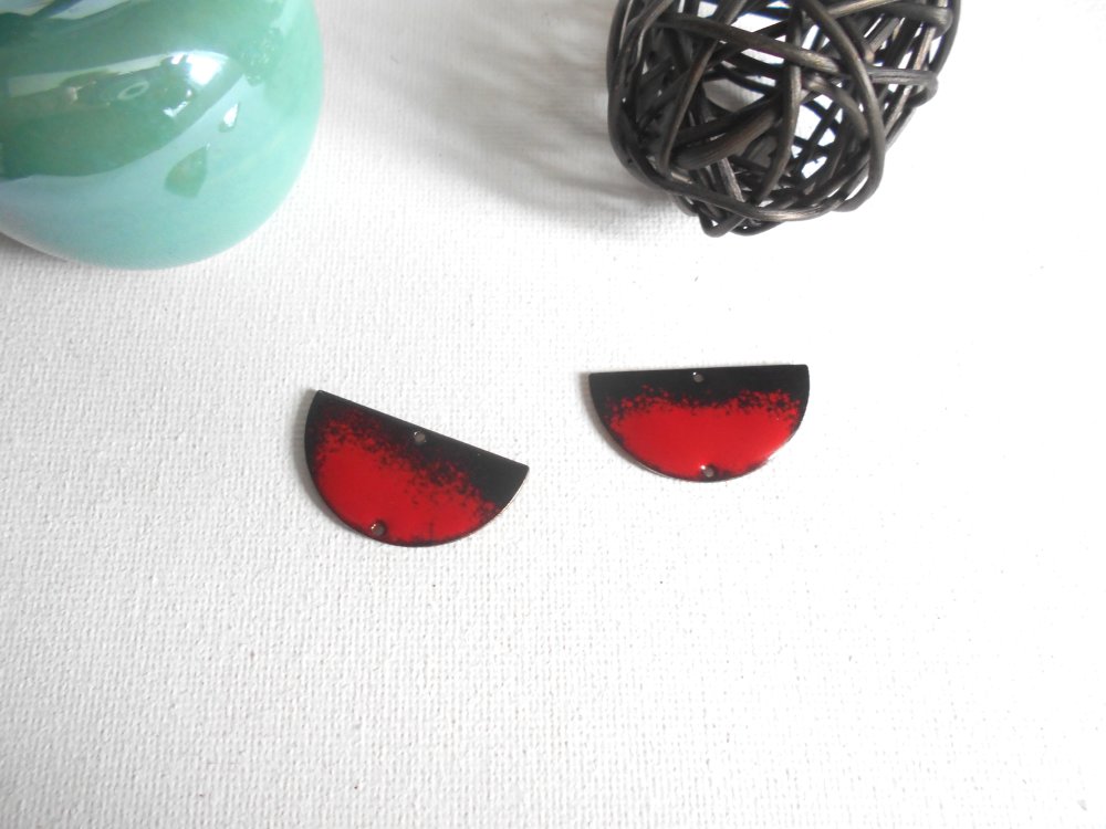 lot de 2 connecteurs demi lune effet émaillé rouge et noir 2 faces 30x15 mm (possibilité de faire dans d'autres couleurs, m'informer lors de la commande)