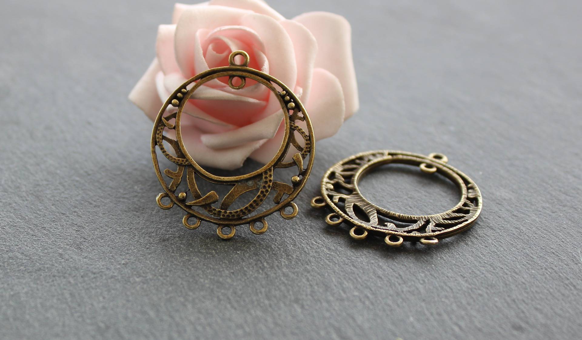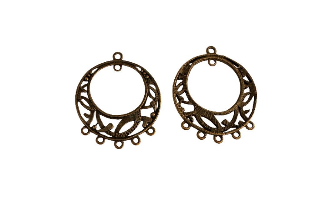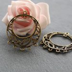 Lot composé de deux pendentifs connecteurs cercles finement ciselés 5 rangs en métal coloris bronze garanti sans plomb, sans nickel et sans cadmium.