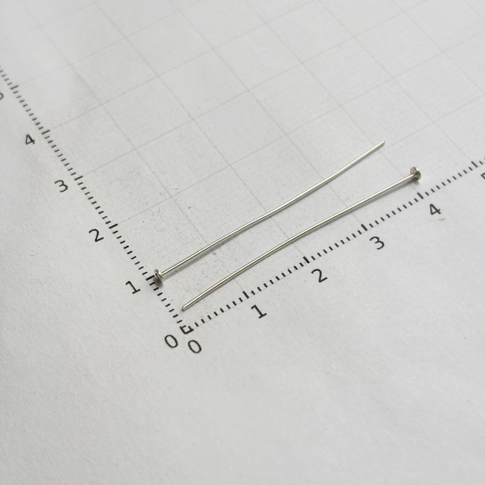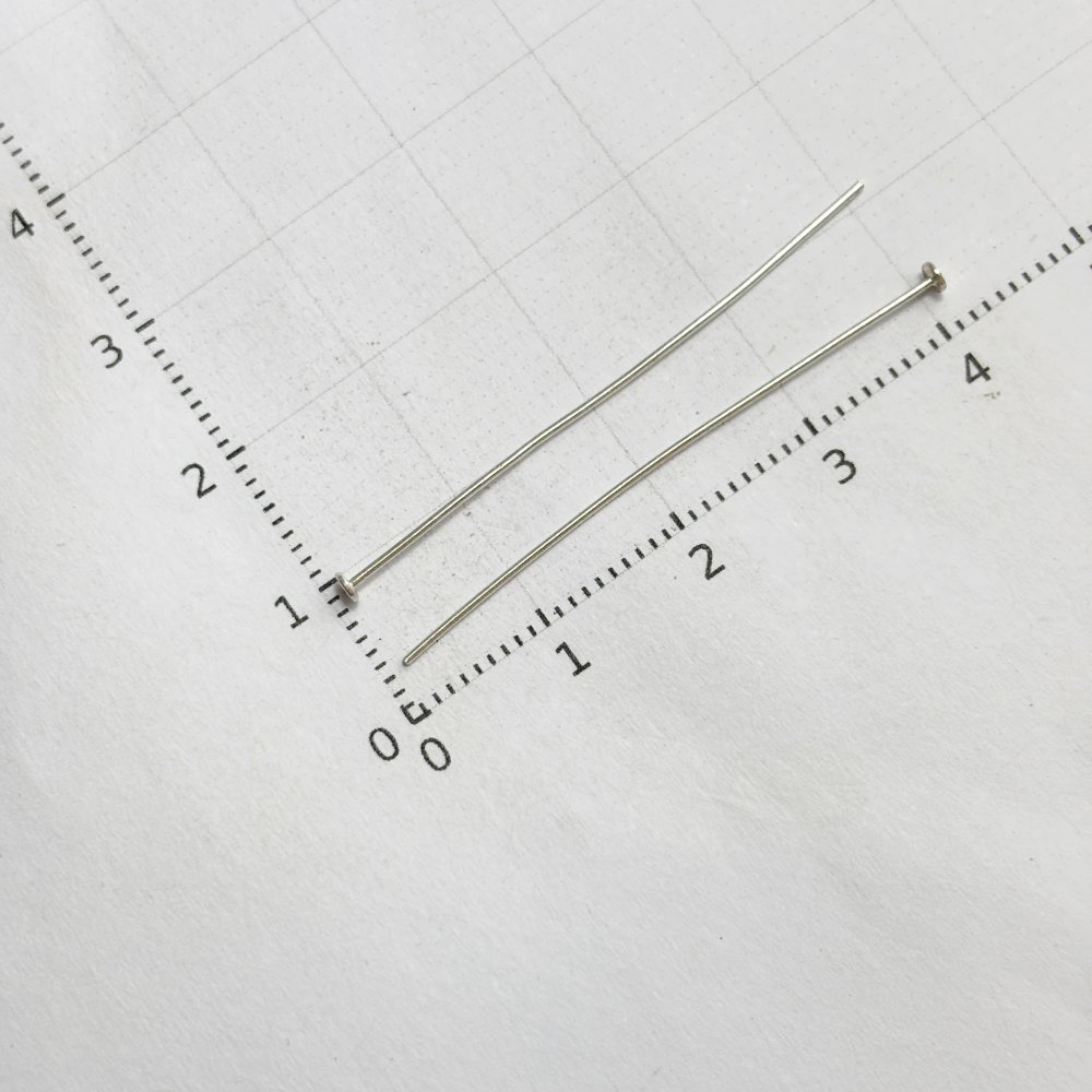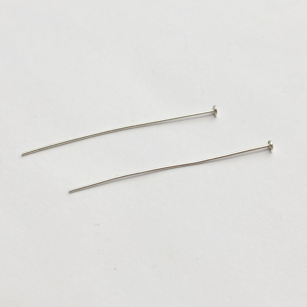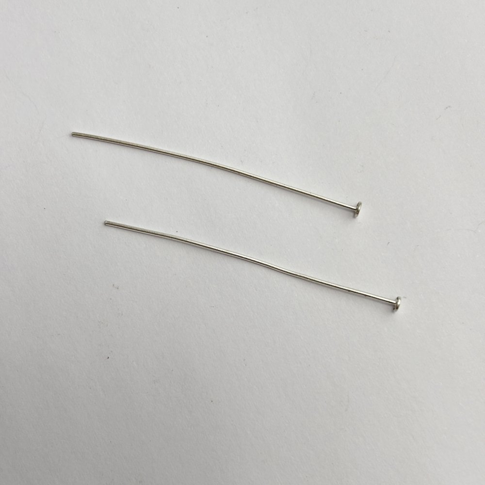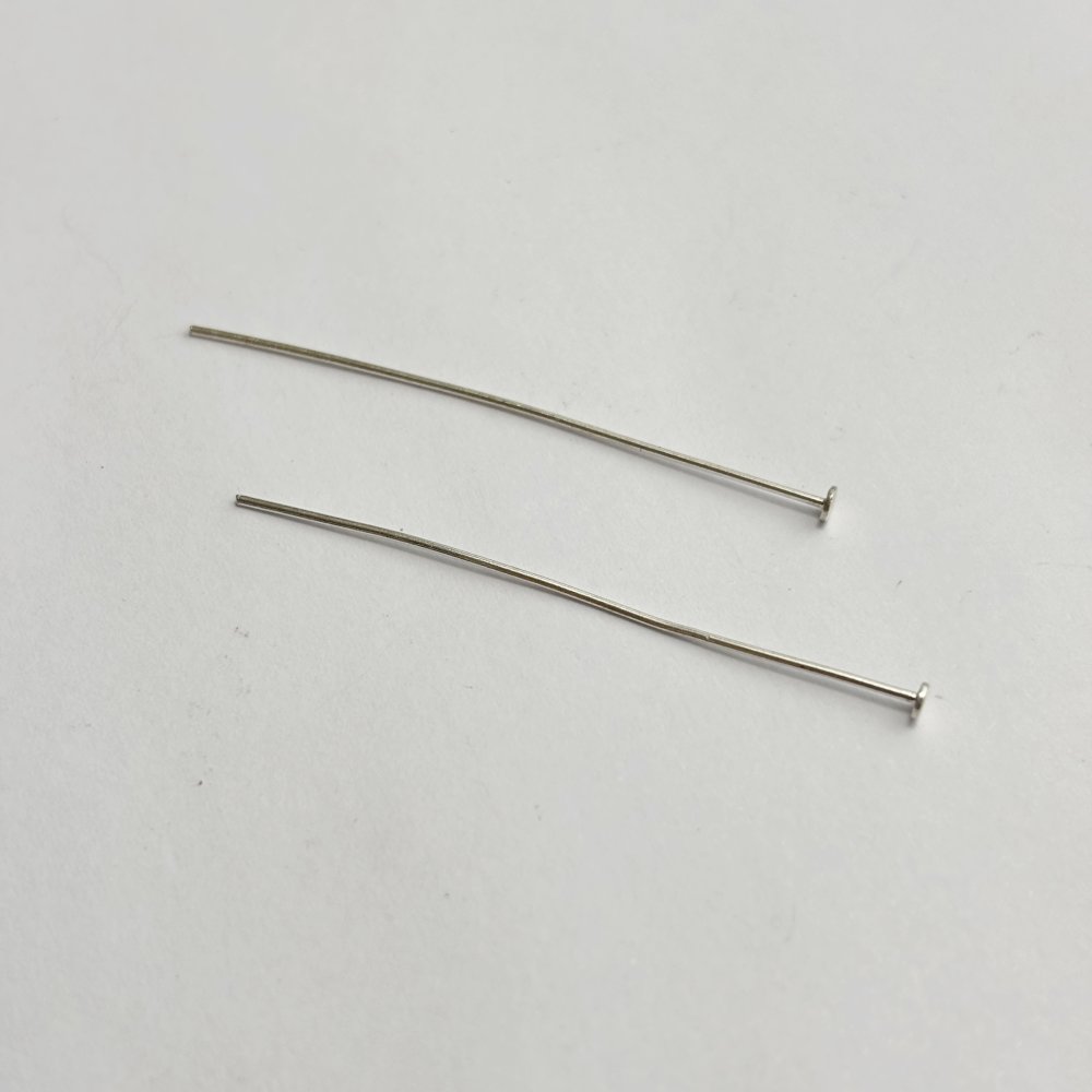 2 Tiges tête plate en argent 925 de 40 mm, fil 0,6 mm et tête 2 mm. Apprêts de bijouterie professionnels pour créations solides et raffinées