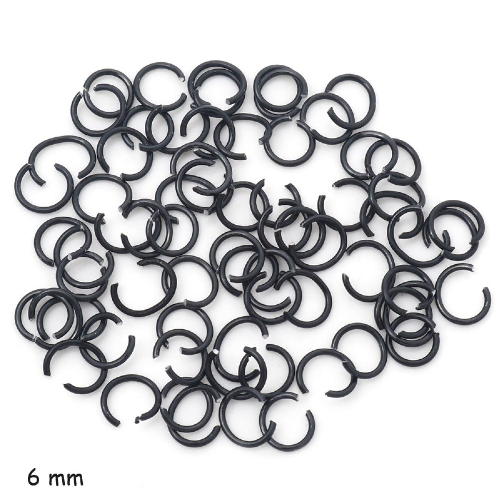 Anneaux 6 mm jonction ouvert noir x 20