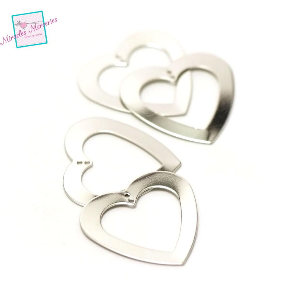 C,D - 4 connecteurs chandeliers "coeur" 28x27 mm, laiton argenté 008a