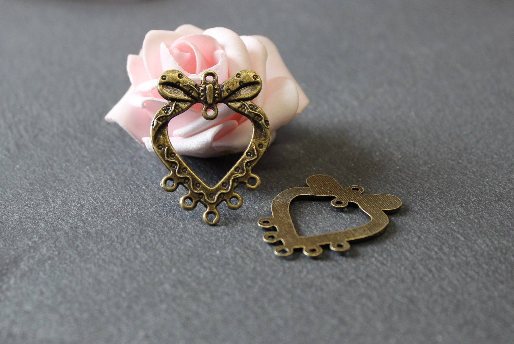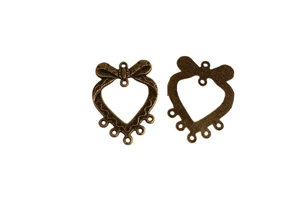 connecteurs coeur orné de son noeud en métal bronze de 37x28 mm