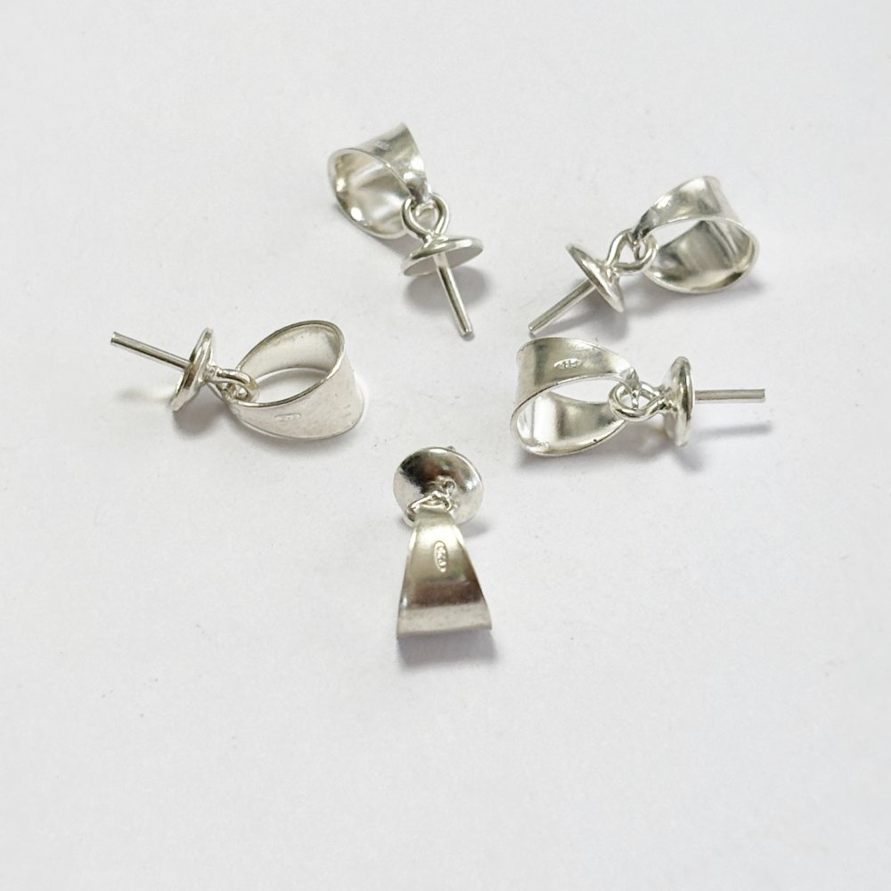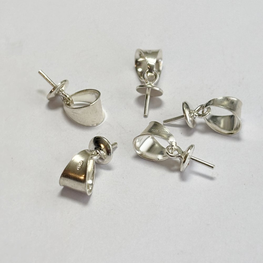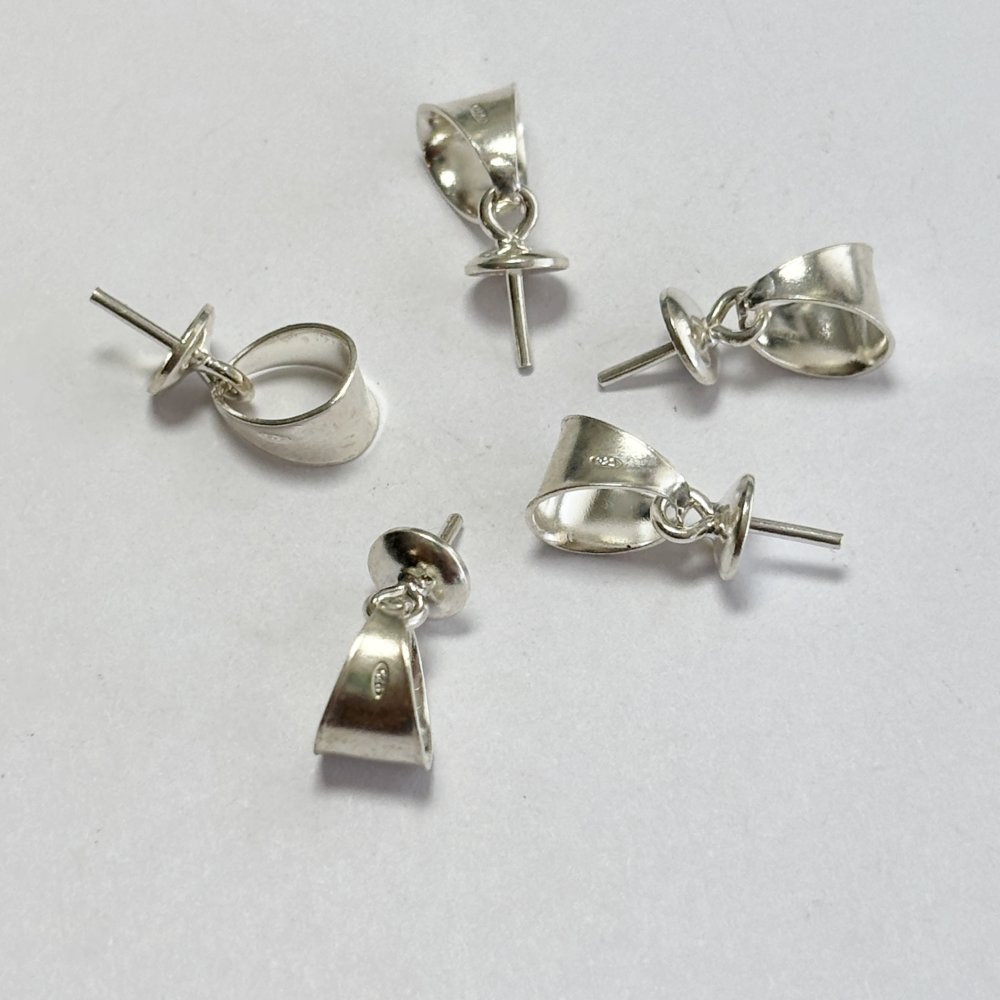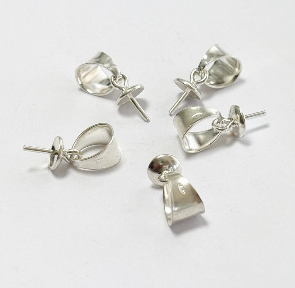Lot de 5 bélières en argent 925/1000 certifié et poinçonné, idéales pour coller des perles semi-percées et réaliser des pendentifs élégants. Apprêts de qualité professionnelle, argent recyclé, fabrication italienne.