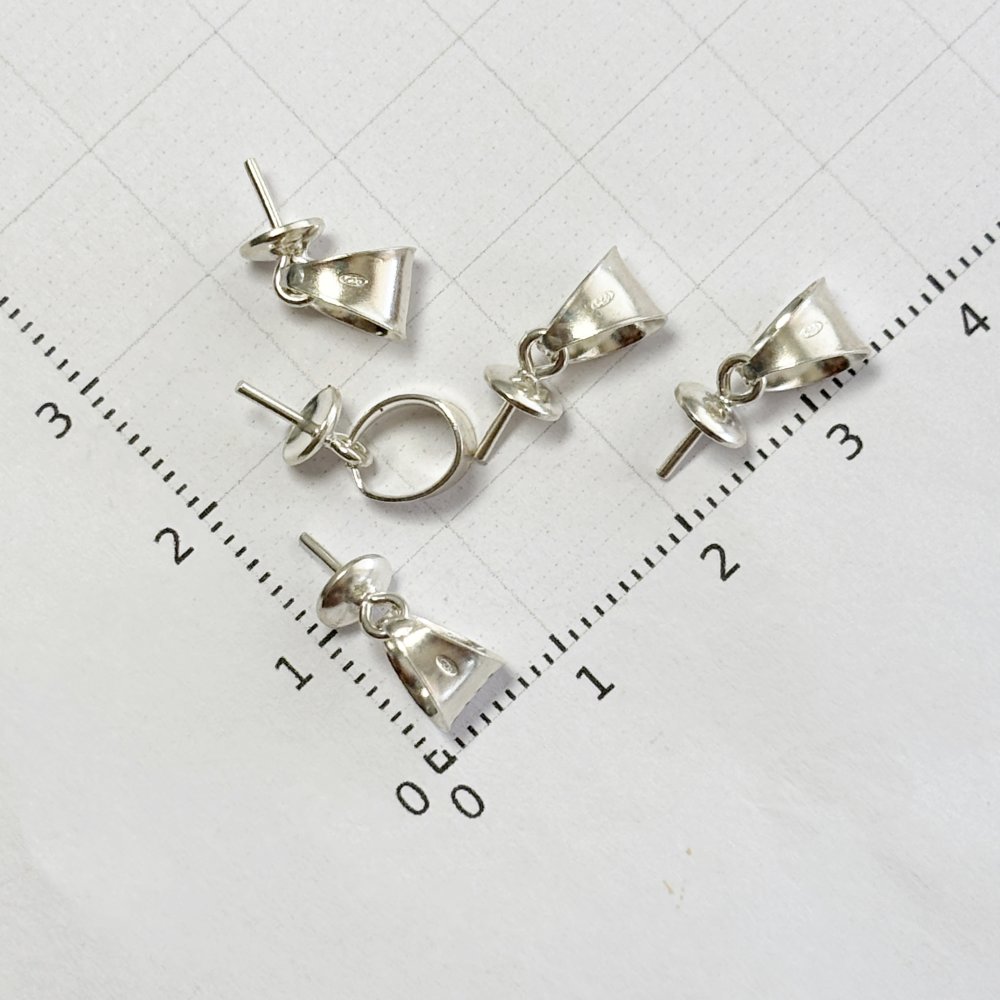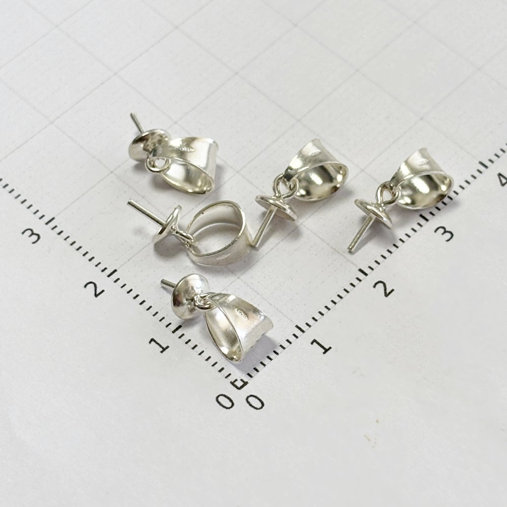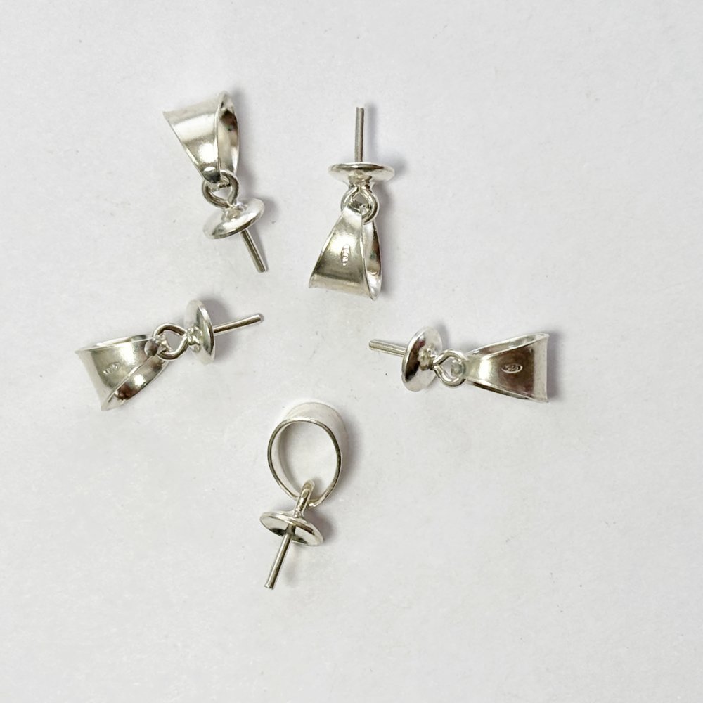 Lot de 5 bélières en argent 925/1000 certifié et poinçonné, idéales pour coller des perles semi-percées et réaliser des pendentifs élégants. Apprêts de qualité professionnelle, argent recyclé, fabrication italienne.