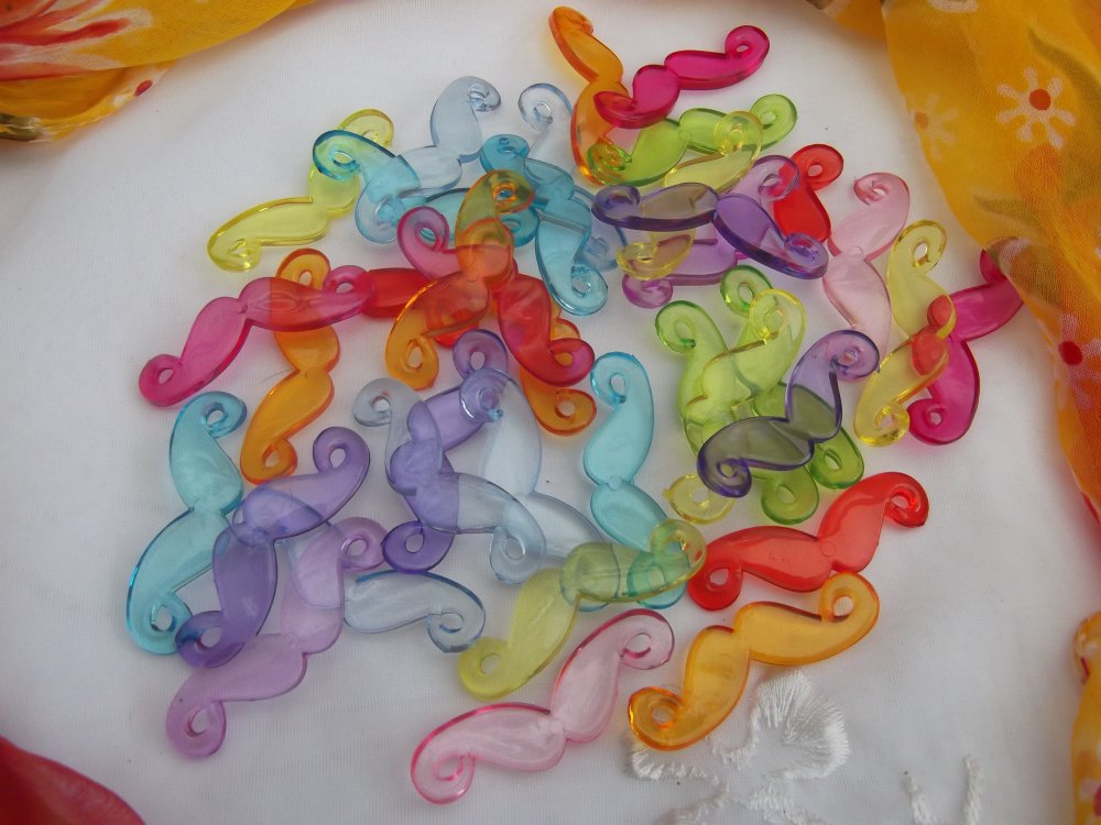 5 connecteurs moustache mixte 46x13mm acrylique transparent