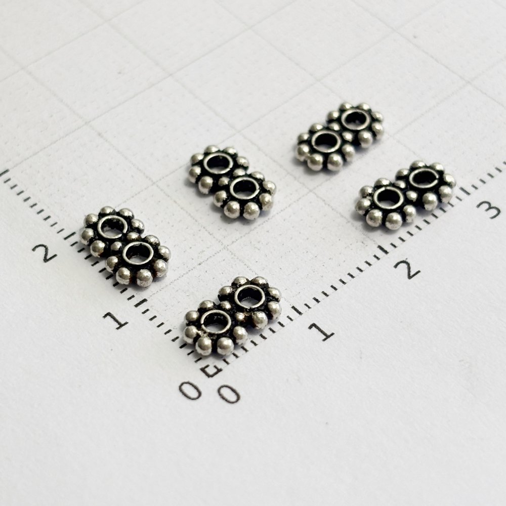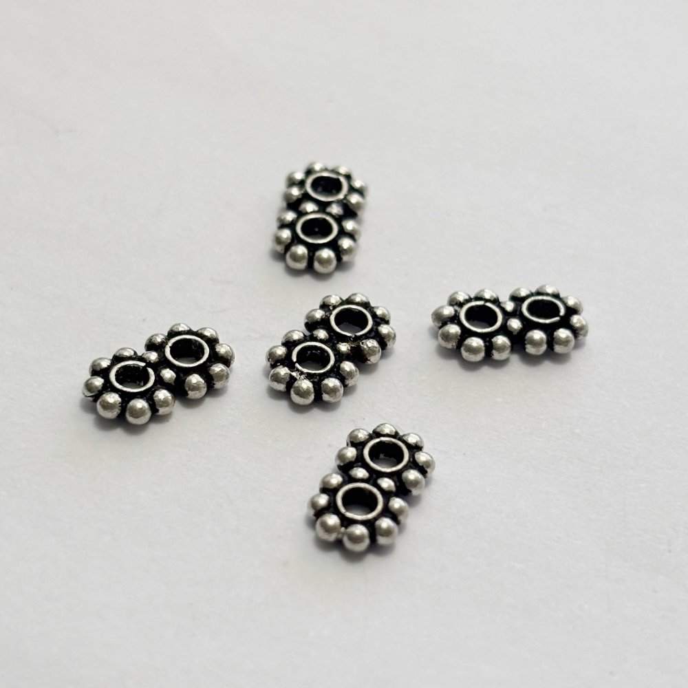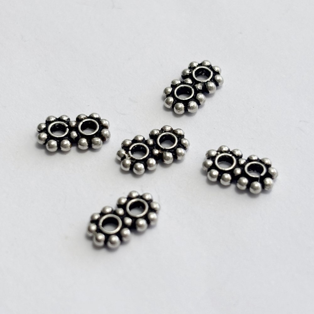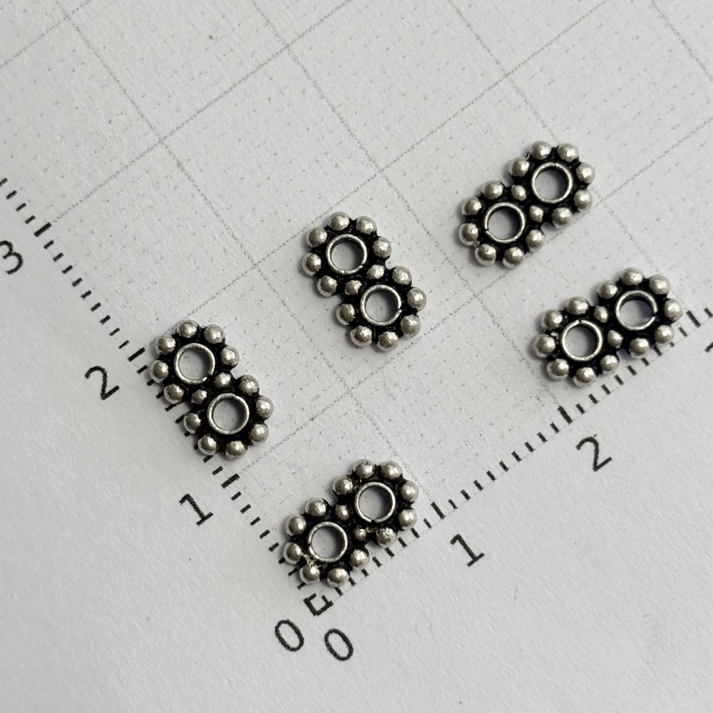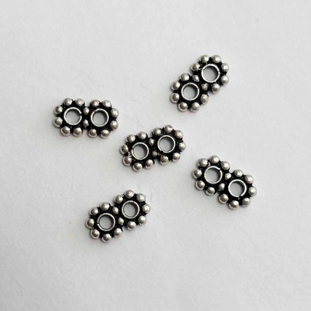 Lot de 5séparateurs 2 rangs à 7 points en argent 925. Apprêts fins non poinçonnés (poids inférieur à 30 g). Idéals pour bracelets ou colliers multi-rangs. Finition oxydée élégante et structurée.