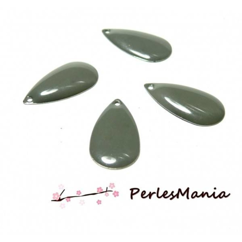 5 SEQUINS EMAILLES FORME GOUTTE D'EAU GRIS SOURIS 21mm, DIY . Émaillé d'un coté Matière : métal sans nickel