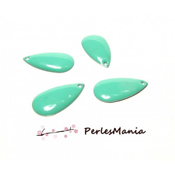5 SEQUINS EMAILLES FORME GOUTTE D'EAU VERT D EAU 21mm, DIY . Émaillé d'un coté Matière : métal sans nickel
