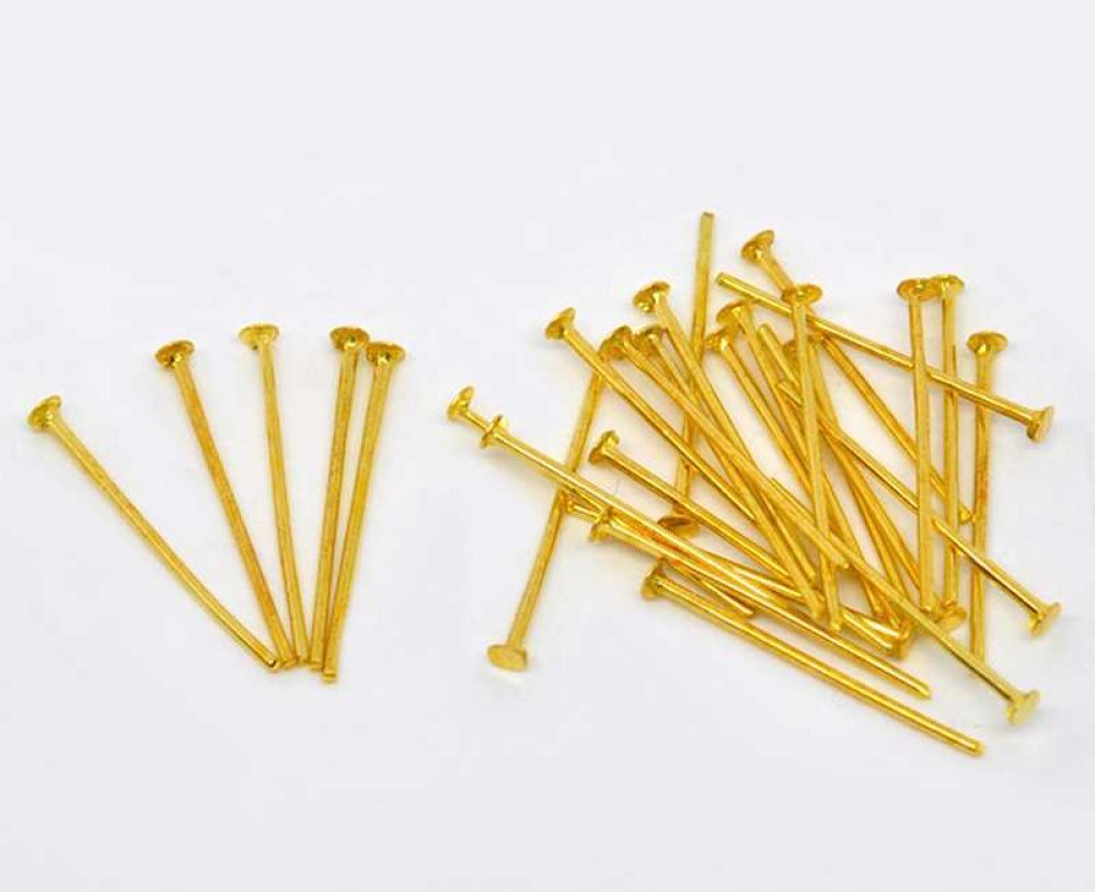 LOT DE 50 PIECES - CLOUS-TIGES A TETE PLATE - DORÉ