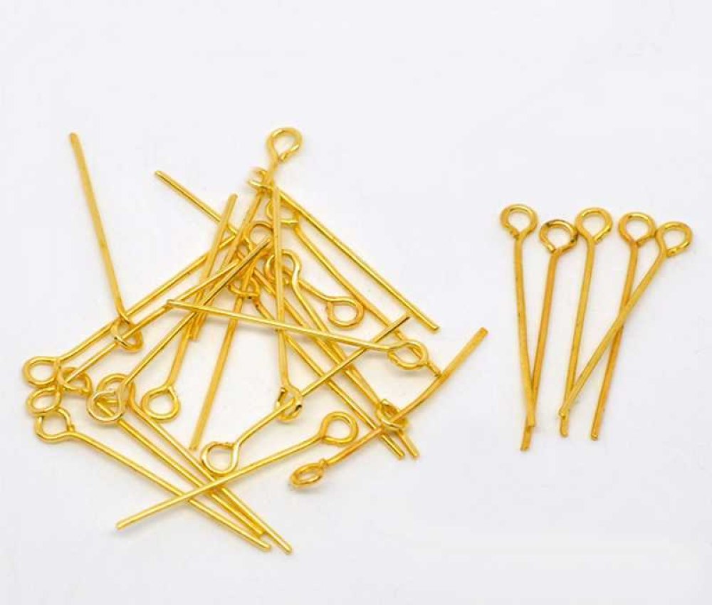LOT DE 50 PIECES - CLOUS-TIGES A OEIL - CLOUS-TIGES A TETE RONDE - DORÉ