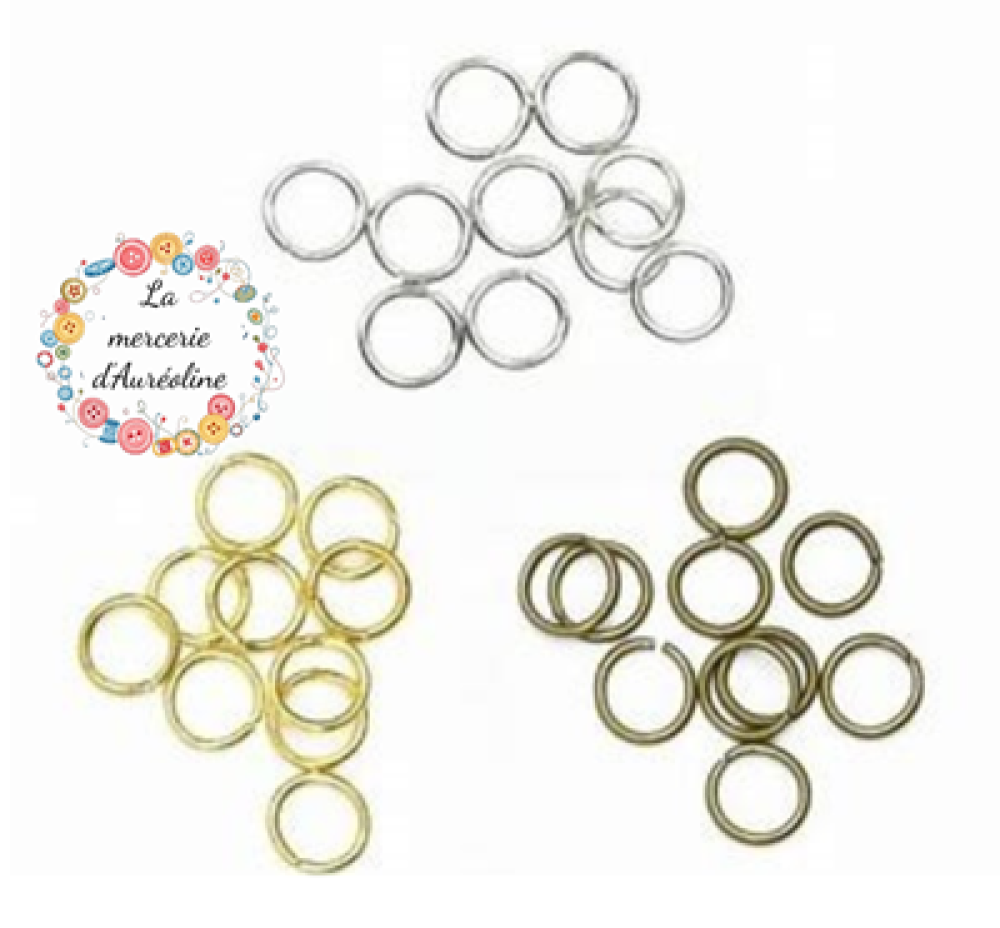 Lot de 20 anneaux ronds ouverts, anneaux de jonction, en métal de 7mm de diamètre.