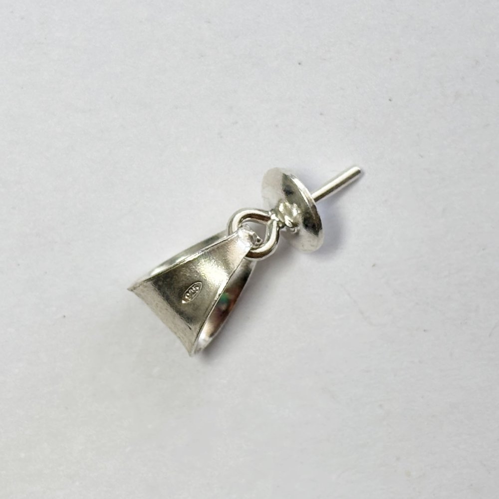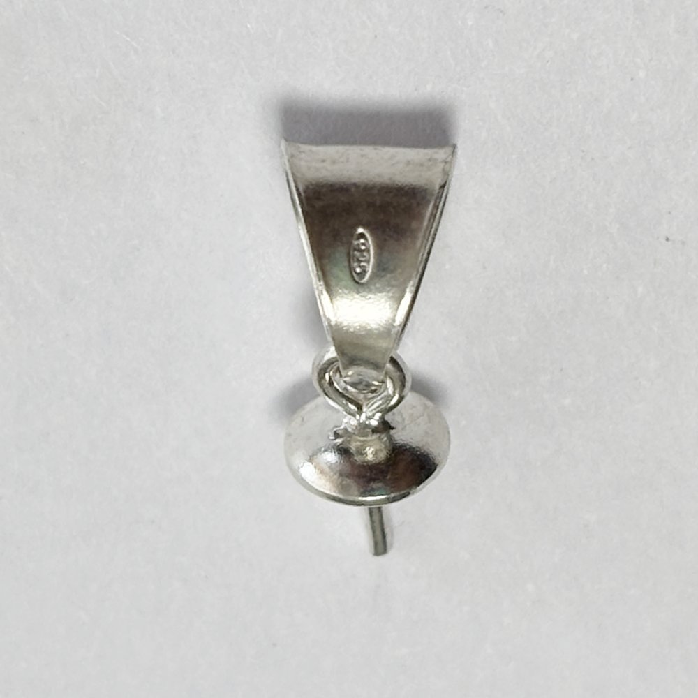 Bélière en argent 925/1000 poinçonné avec coupelle et tige de 5 mm, idéale pour coller une perle semi-percée et créer un pendentif raffiné. Apprêt de qualité professionnelle, argent recyclé, fabrication italienne.