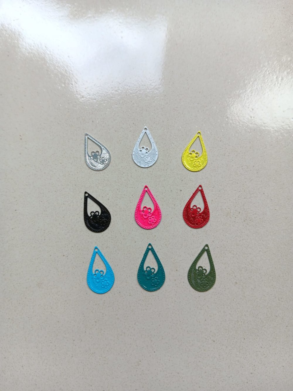 Breloque filigrane goutte argentée en métal. Dimensions : 17x10mm - A l'unité ou en lot de 10 pièces