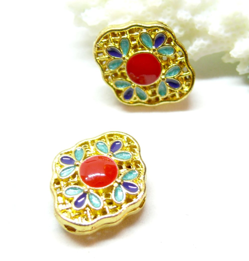 BU11210303150528 REF 2 PAX 2 Perles intercalaires Ethnique 20mm, résine émaillée, Métal Doré