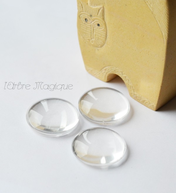 Cabochon en verre transparent rond 25 mm vendu par 10 unités