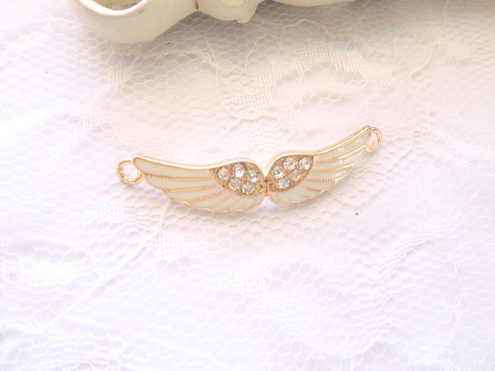 un connecteur aile, émail blanc et or clair, serti de petit strass,