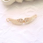 connecteur émail et strass, connecteur ailes, or clair , émail, perle, intercalaire, lien