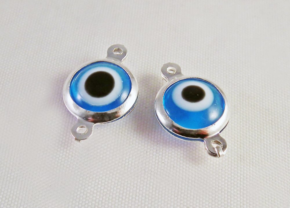 Lot de 2 Breloques Pendentifs Connecteurs Forme Oeil Bleu en verre