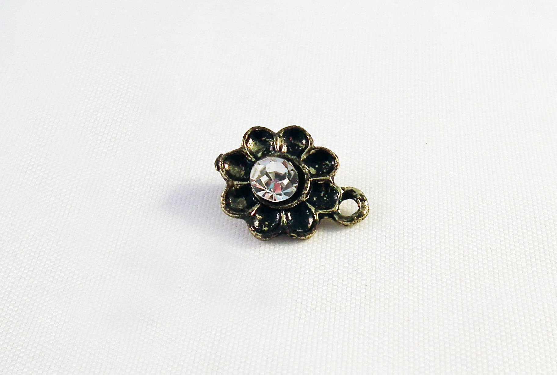 Délicat Pendentif Breloque Connecteur Vintage Fleur Cristal Strass, Bronze.