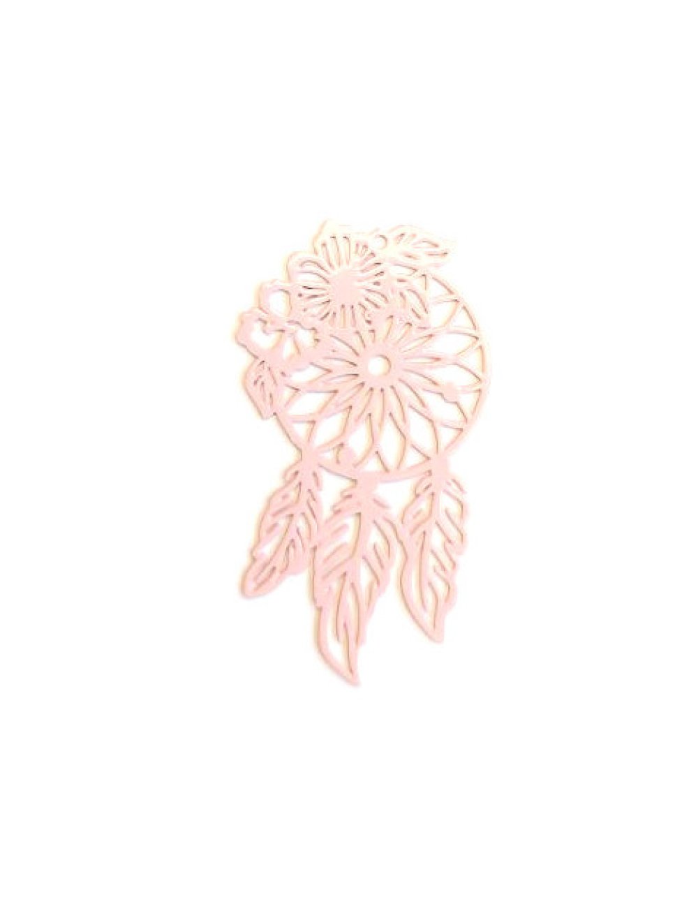 Estampe filigrane attrape-rêve rose en métal. Dimensions : 45x25mm - A l'unité ou en lot de 10 pièces