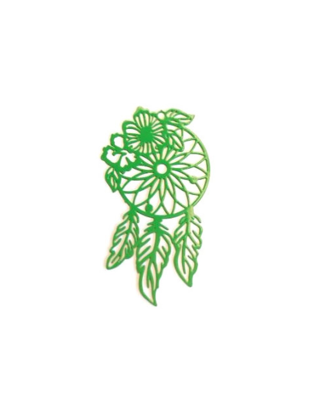 Estampe filigrane attrape-rêve vert en métal. Dimensions : 45x25mm - A l'unité ou en lot de 10 pièces