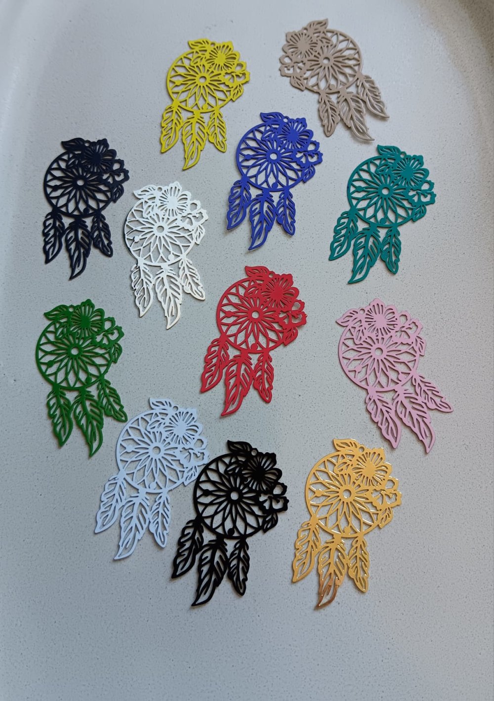 Estampe filigrane attrape-rêve violet en métal.