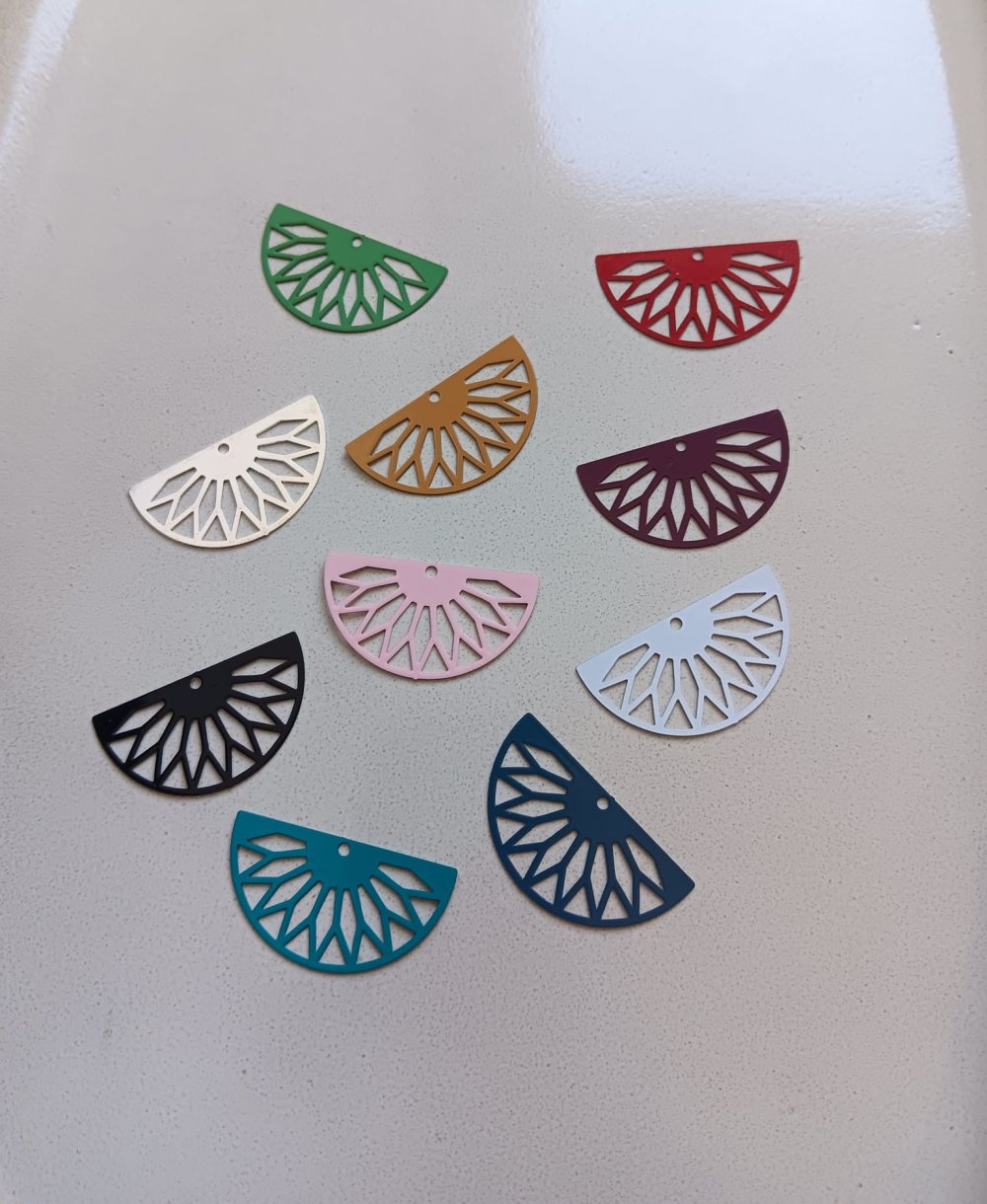 Estampe filigrane demi-lune bleu marine en métal. Dimensions : 16x30mm - A l'unité ou en lot de 10 pièces
