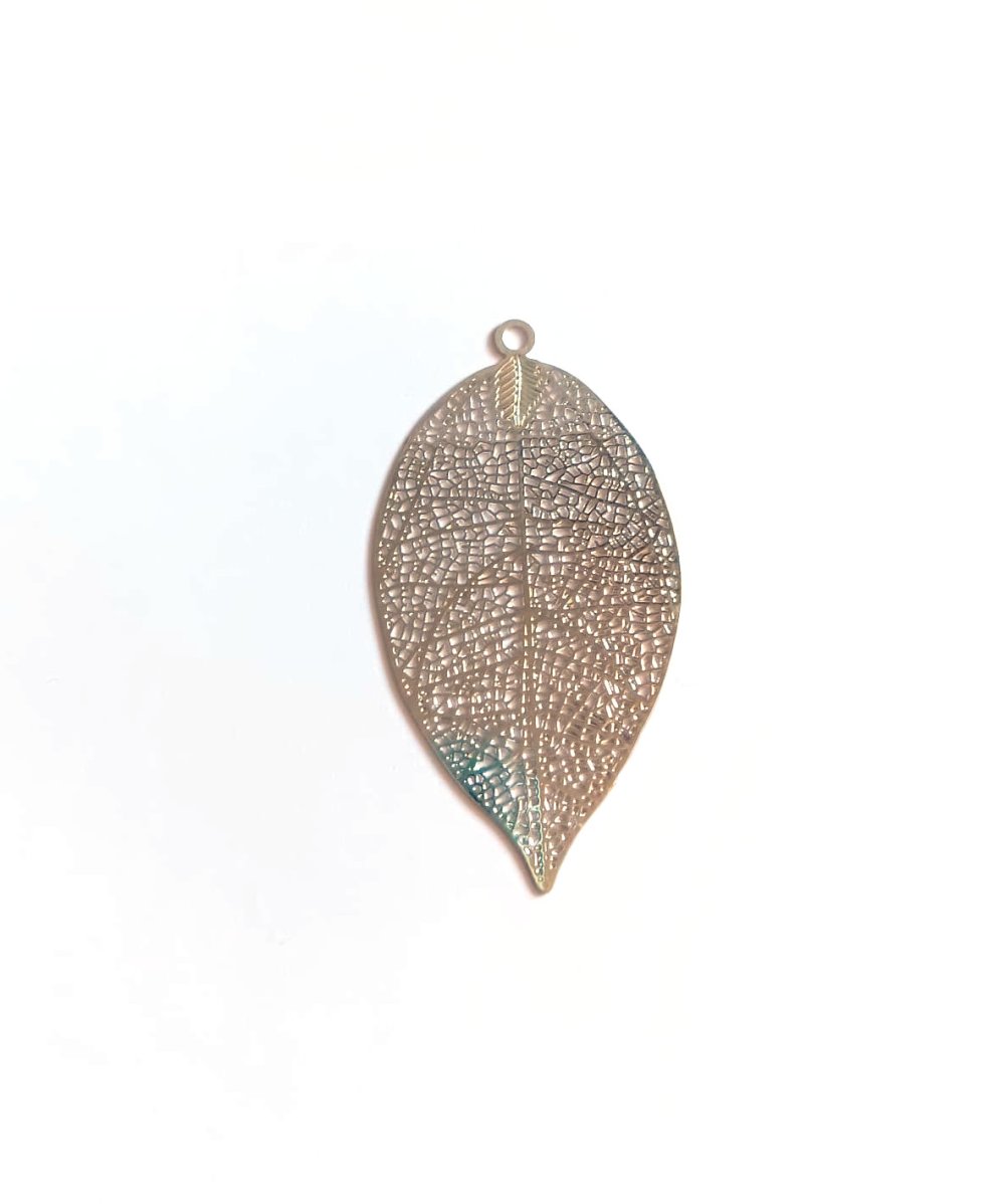 Estampe filigrane feuille argentée en métal. Dimensions : 49x26mm - A l'unité ou en lot de 10 pièces