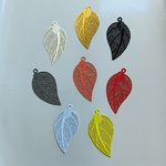 Estampe filigrane feuille blanche en métal. Dimensions : 38x19mm - A l'unité ou en lot de 10 pièces
