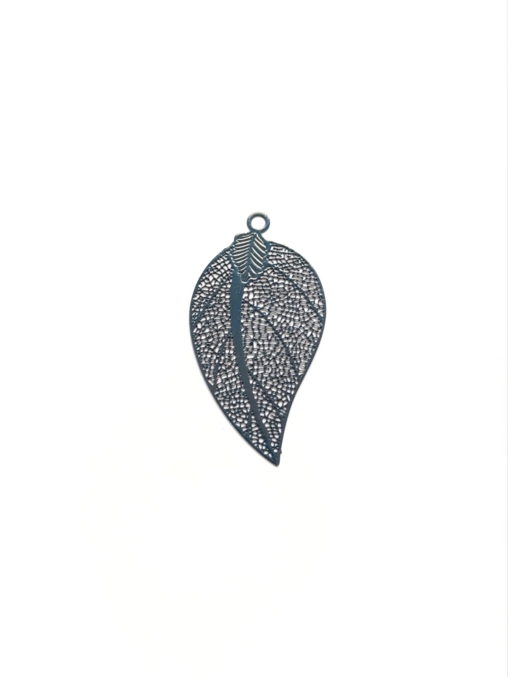 Estampe filigrane, feuille bleu marine en métal. Dimensions : 52x28mm - A l'unité ou en lot de 10 pièces