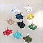 Estampe filigrane feuille de ginkgo beige en métal. Dimensions : 20x25mm.