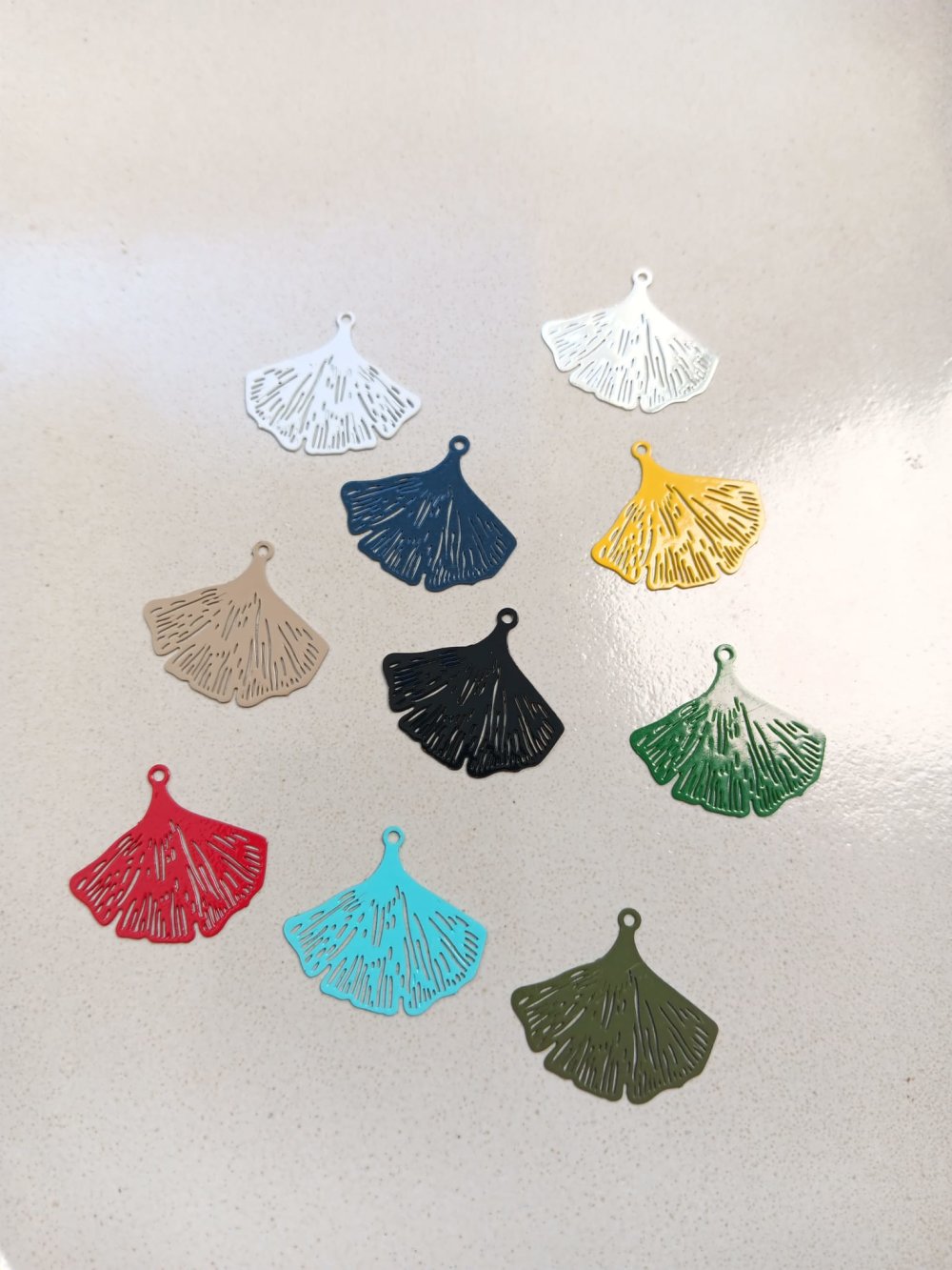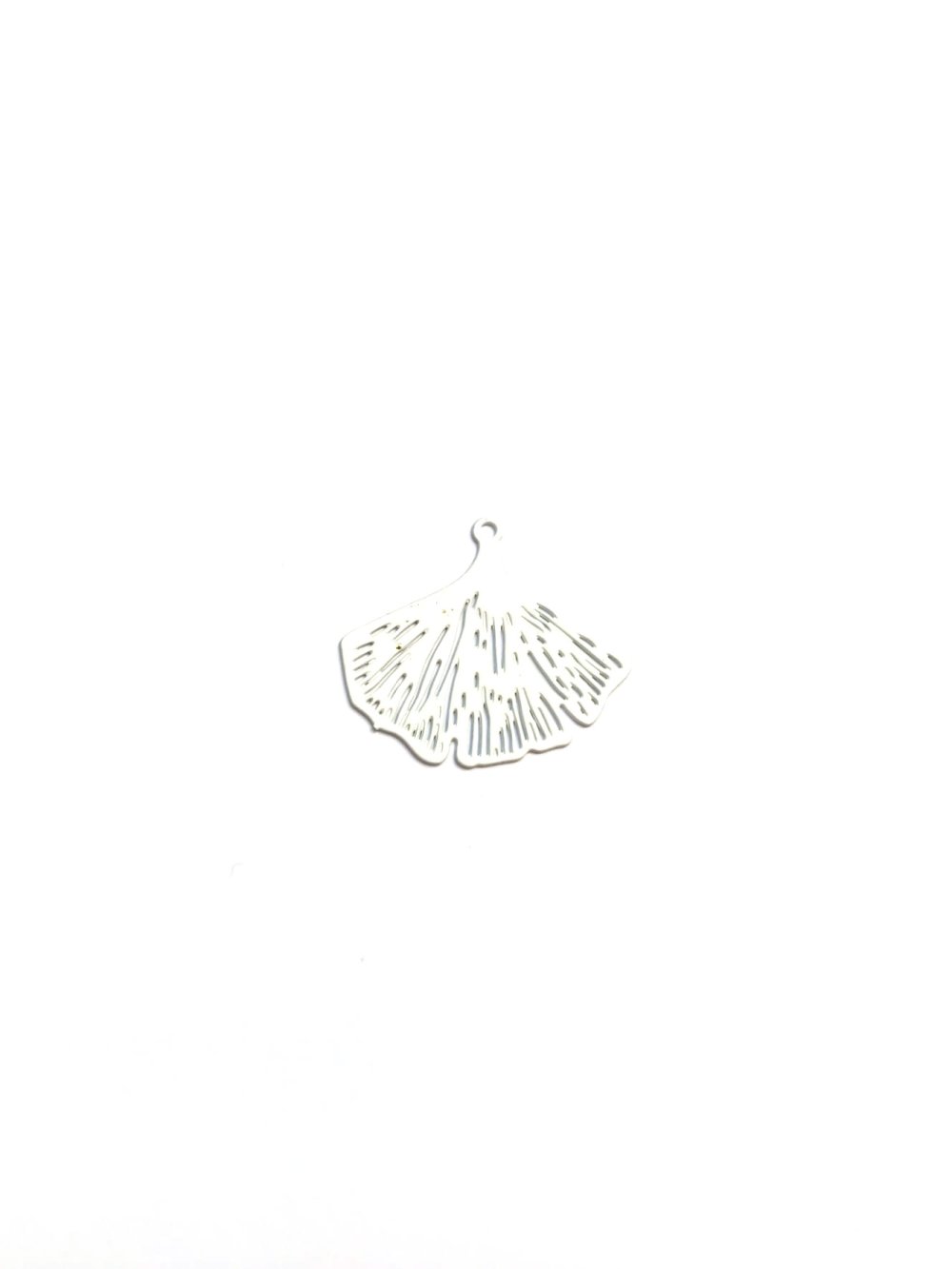 Estampe filigrane feuille de ginkgo blanche en métal. Dimensions : 20x25mm.